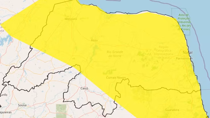 O Instituto Nacional de Meteorologia (Inmet) emitiu um alerta amarelo de chuvas intensas para Natal e outras 123 cidades do Rio Grande do Norte. O aviso começa às 21h deste sábado 18 e segue até as 23h59 do domingo 19.