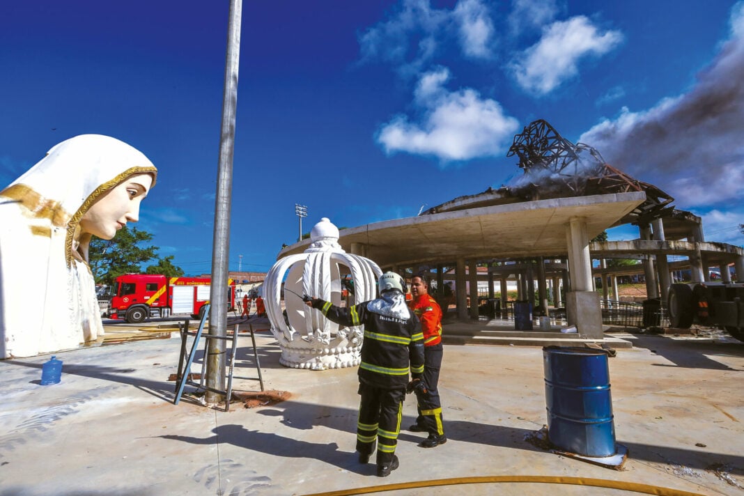 Emocionada, Maria Aparecida da Silva contou que chegou ao local quando o fogo já consumia a estrutura. “Quando eu vi, foi ela já pegando fogo, de cima pra baixo. É muito triste, uma tristeza de dor que a gente acaba chorando mesmo. Mas temos que ter muita fé que ela vai ser reconstruída”, afirmou.