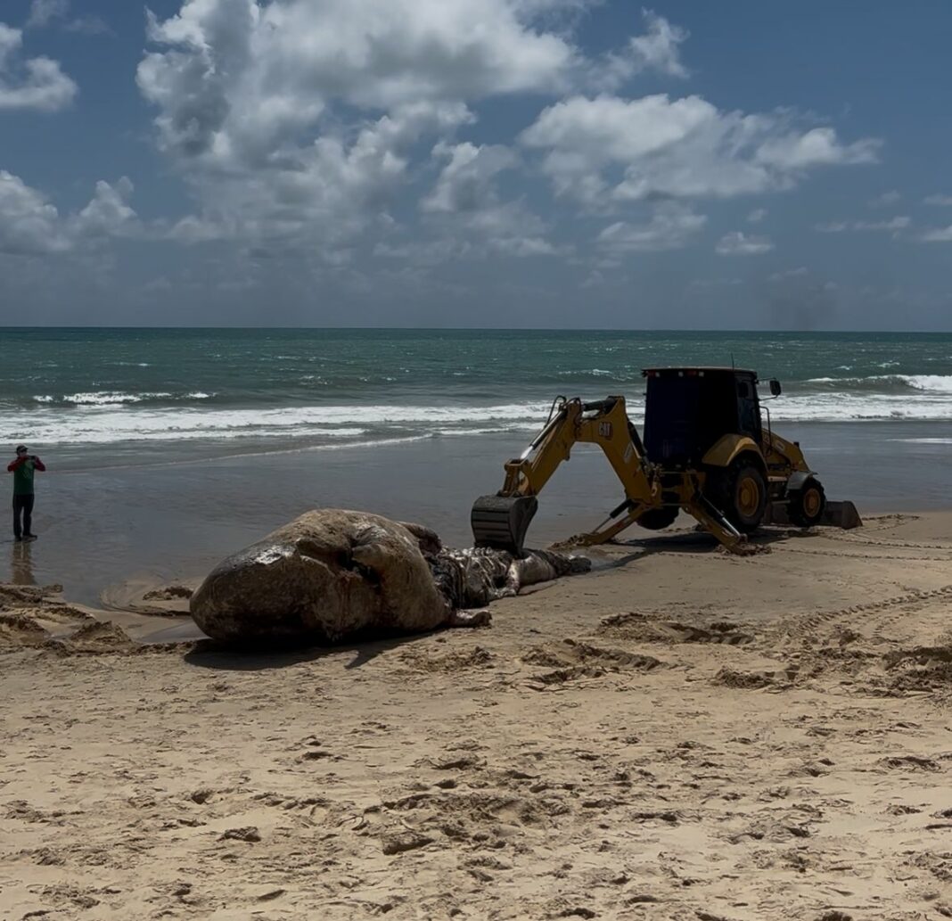 A destinação final da carcaça está sendo realizada com apoio do poder público municipal. O procedimento envolve a retirada do animal da linha de maré, com o uso de retroescavadeira, e o enterramento adequado, após a conclusão das etapas técnicas previstas.