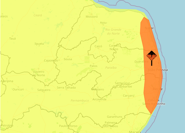 Inmet emite alerta de chuvas intensas para Canguaretama e mais 123 cidades do RN
