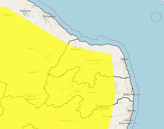 Legenda em amarelo compreende a área do aviso | Foto: Reprodução/InmetPara moradores das áreas afetadas, o Inmet recomenda que se beba bastante líquido, evite desgaste físico nas horas mais secas e evite exposição ao sol nas horas mais quentes do dia.